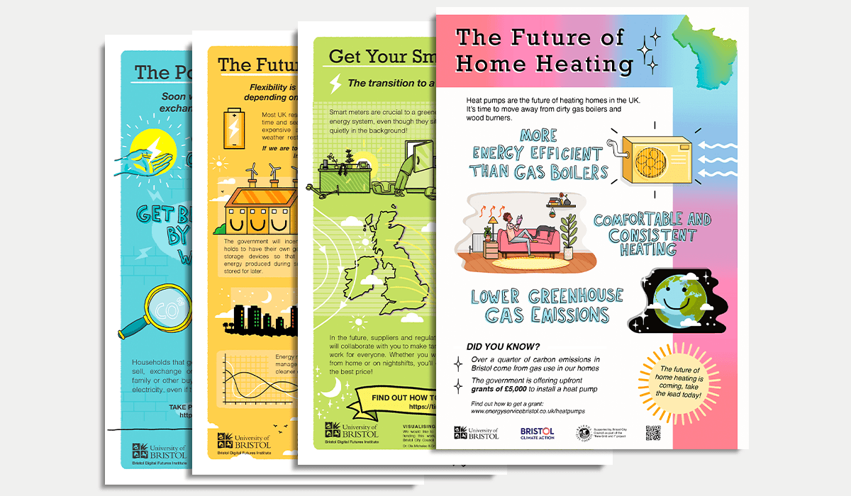 Commissioned by the Bristol Digital Futures Institute, this project explored how visual communication can support public understanding and engagement around smart local energy systems.
