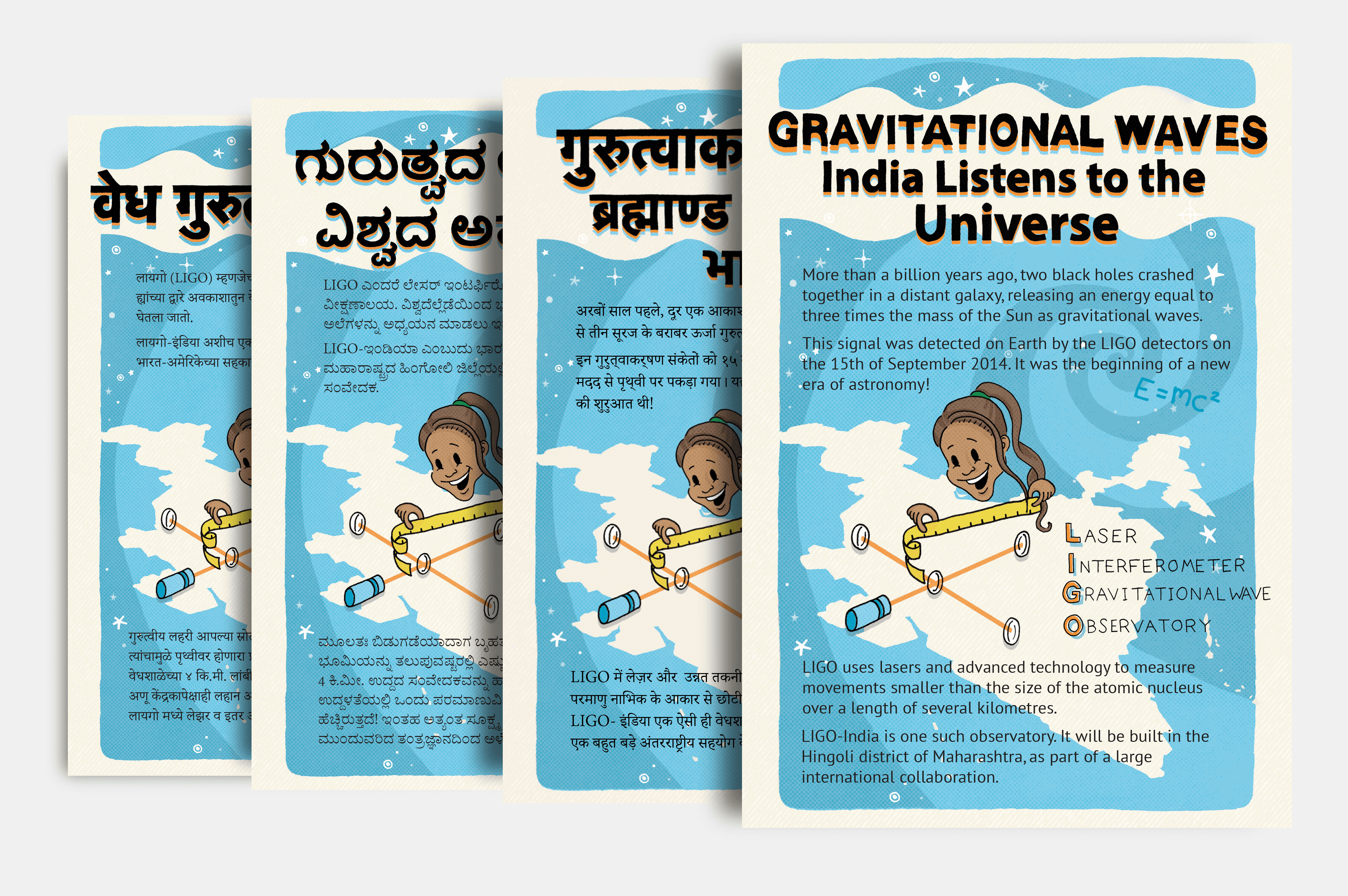 With the help of LIGO INDIA, the leaflet has been translated into Kannada, Marathi and Hindi, as well as an India specific English version.